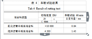 2.5 %的油石比, 分別制備乳化瀝青冷再生混合料和泡沫瀝青冷再生混合料試件, 進(jìn)行車轍試驗(yàn) , 試驗(yàn)結(jié)果如表4 所示。